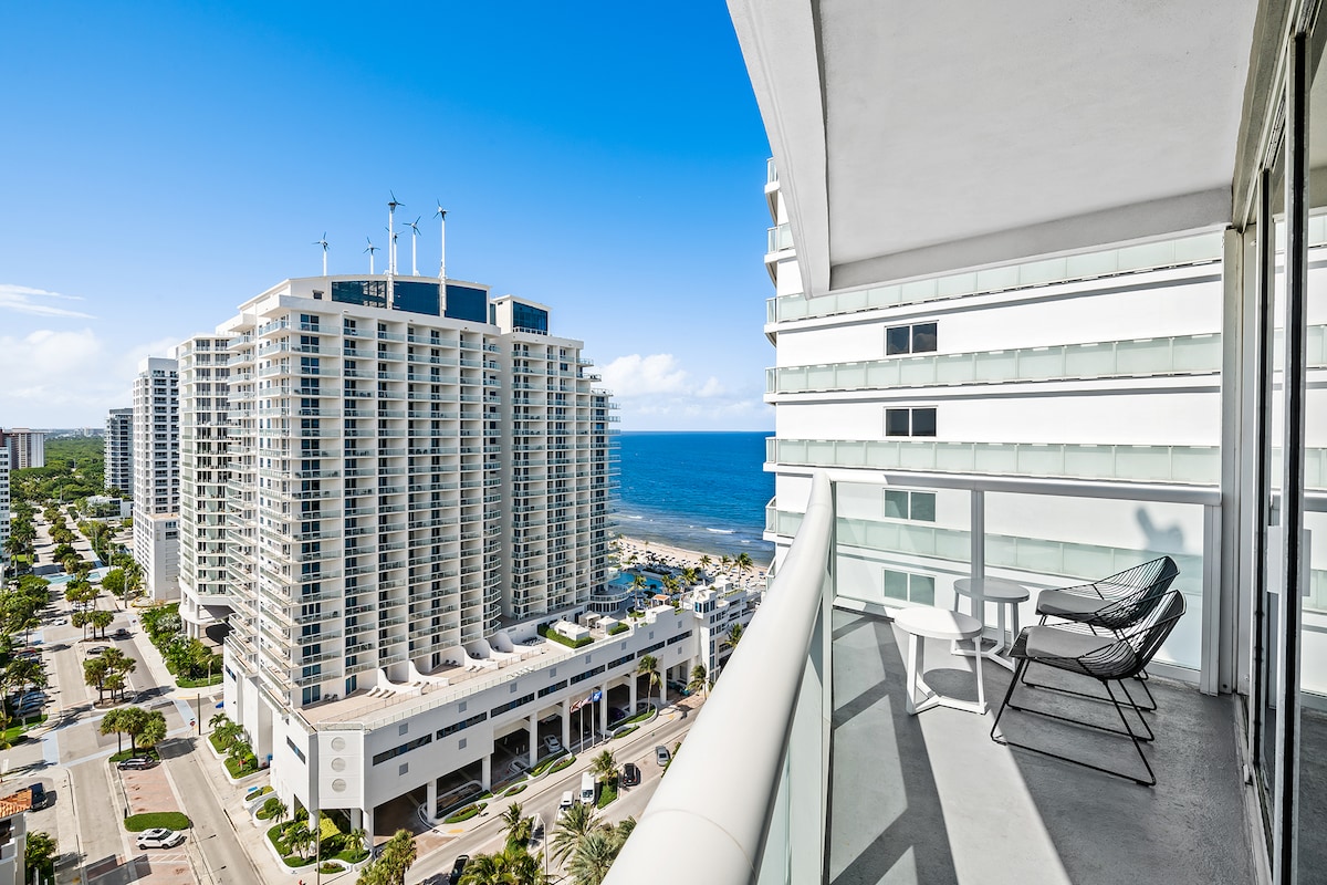 An Oversized Suite Jr. unit on the 12th floor of a beautiful Ocean Resort right on Fort Laurdedale Beach. Art deco gorgeous building with amenities including chic spa and 6th floor resort pool & lounge right in the hottest section of the beach. Our distinctive unit offers jaw-dropping views of the Intracoastal Water Downtown Fort Lauderdale, the Atlantic Oceanway and the Pool. The unit features a gourmet kitchen, an italian marble bathroom with a deep- soaking and a separate shower.