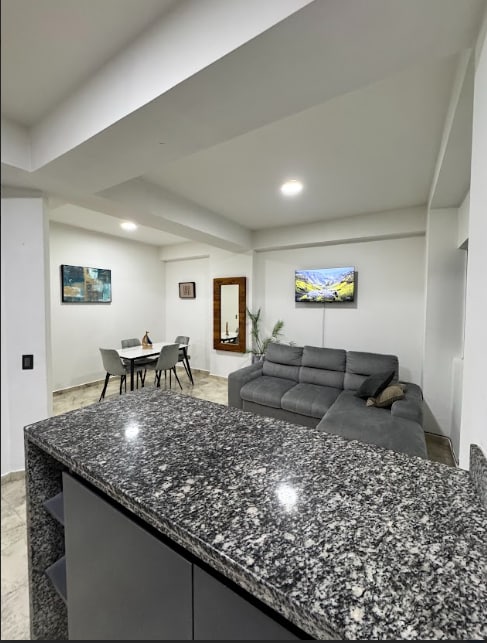 Acogedor apartamento tipo estudio, dispone de todos los servicios las 24 horas, wifi(RECIENTEMENTE SE INSTALÓ INTERNET FIBRA ÓPTICA DE 50mb DE VELOCIDAD, ES DE 8 hasta 20 VECES MÁS RAPIDO QUE CUALQUIER INTERNET CONVENCIONAL) netflix en ambos televisores. estacionamiento privado. nunca falta el agua ya que tiene pozo propio, y el edificio tiene planta electrica para areas comunes y ascensores. muy céntrico, excelente zona y muy tranquila.