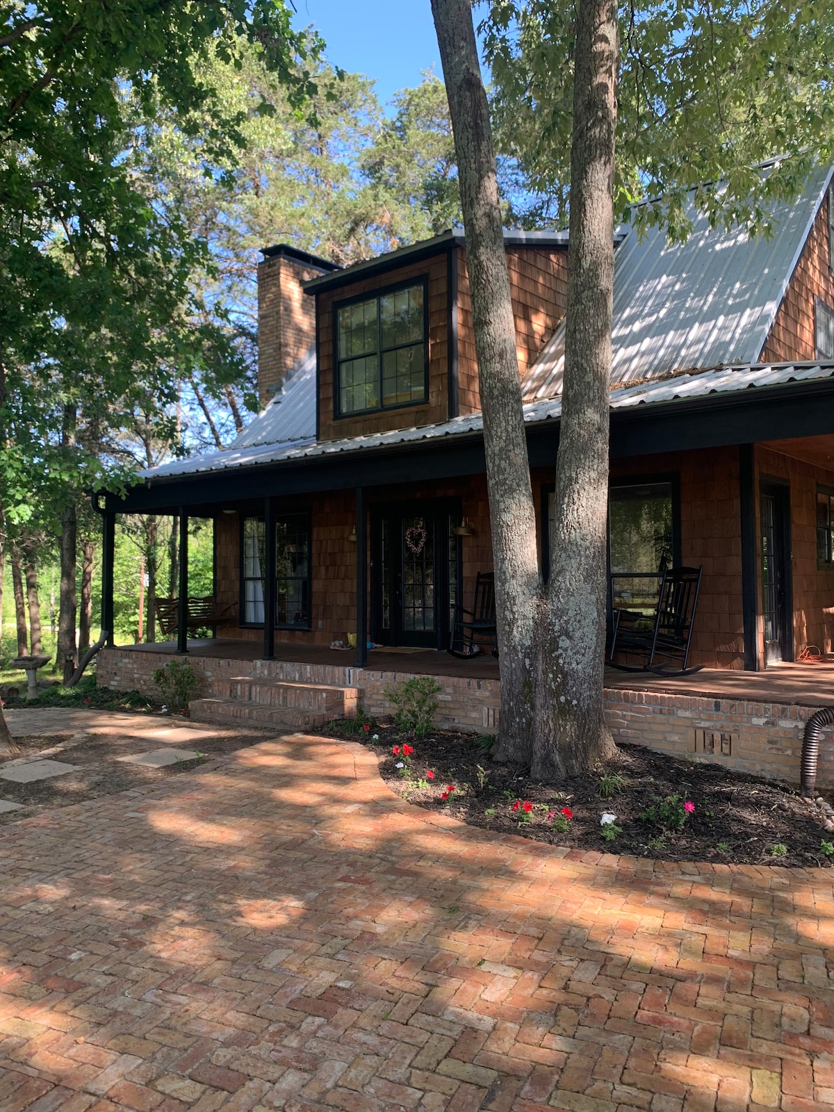 Riverfront Farmhouse Retreat Private farmhouse with sweeping river views Luxury bedding & handpicked furnishings Supper Porch with zip line, swings, flattop grill / griddle, smoker & wood-fired pizza oven Spacious outdoor areas for gathering, relaxing, and play from morning coffee by the water to evenings making pizza under the lights, this retreat is designed for making unforgettable memories together. Cozy, beautiful, and full of charm... perfect river escape.
