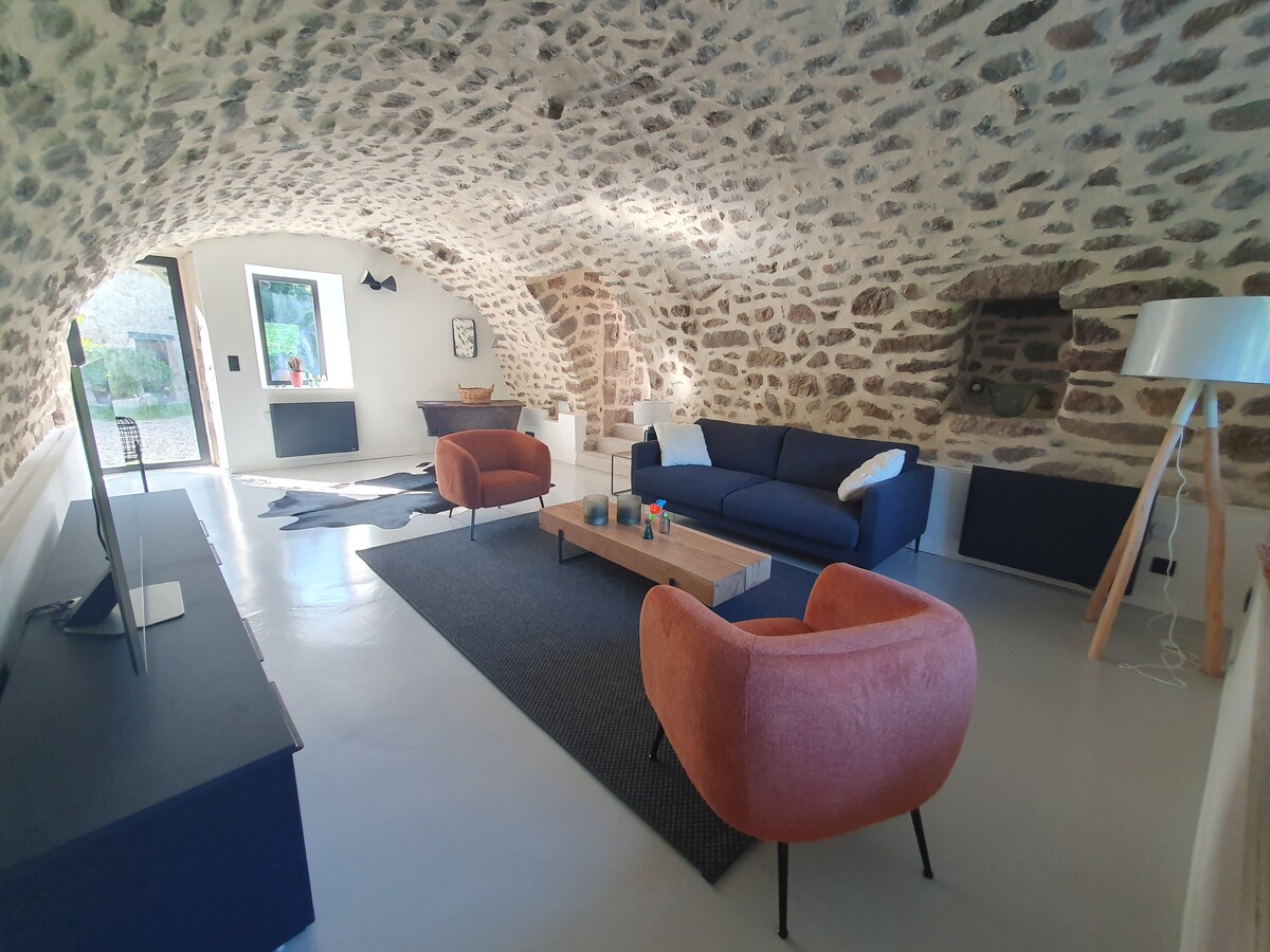 Nestled in a green setting among chestnut trees, our cottage facing the Aizac volcano is located halfway between the mountain and southern Ardèche. Several villages of character are to visit nearby as well as the famous village of Antraigues-sur-Volane thanks to Jean Ferrat (3 Km). Guests can enjoy several water activities or relax with beautiful hikes and walks. Vals and its thermal baths are 10 minutes away. Nature lovers will be delighted.
