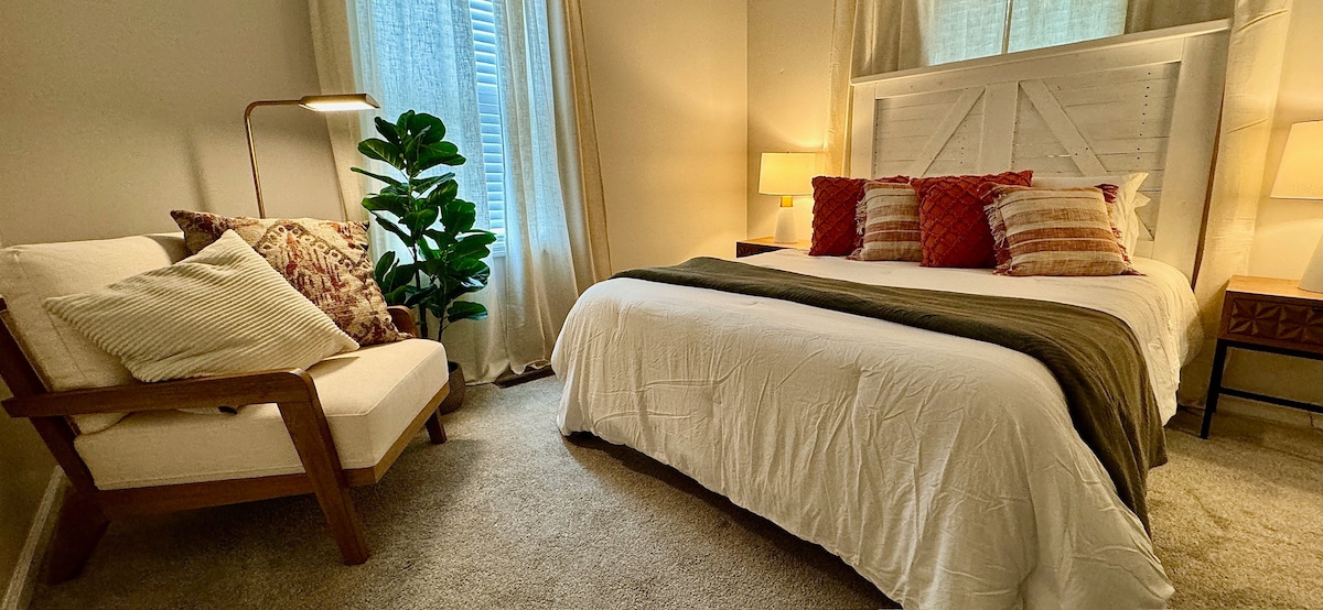 Retreat to this country getaway and gaze at the twinkling constellations under a Tennessee sky. If you’re looking to escape from the city, Sky Farms is a comfortable visit back to nature. With a private carport and entrance, this beautifully decorated, two-bedroom basement apartment comes with a kitchen, full bathroom, living room and patio with brick fire circle. *There is an additional pet fee of $100 per stay payable upon arrival. *Do not leave your pets unattended. Keep off the furniture.