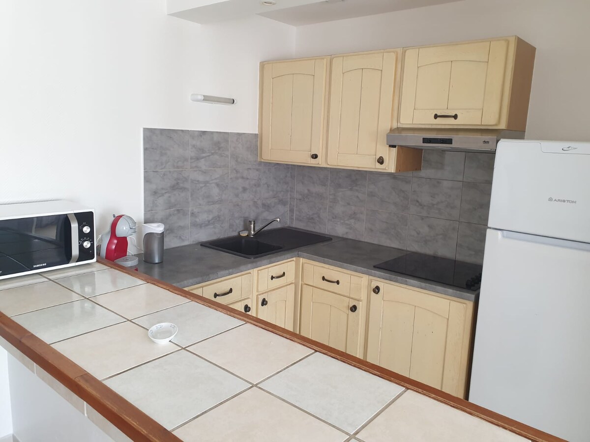 An elegant and functional haven composed of very beautiful volumes. Ground floor apartment, plenty of street parking. An outdoor area designed for relaxation. The fully equipped apartment consists of a large bedroom, a large dressing room, a kitchen/dining room/living room, a large bathroom and a separate toilet. Bed linen and towels are waiting for you. Close to the hospital, factories, IUT and shops.