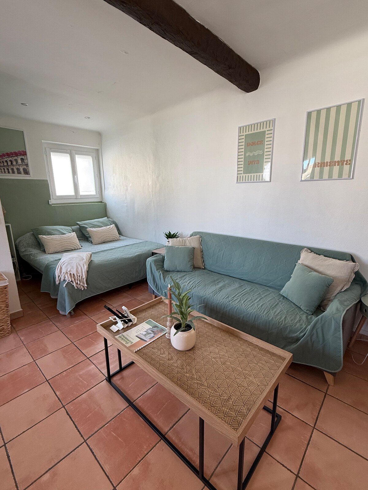 Studio in the courtyard of our house offering a main room with kitchenette (fridge, microwave, stovetop, kettle and Nespresso coffee machine and all cooking utensils and dishes), table, bed area and reading area. Separate bathroom with toilet. Sheets and towels provided Easy parking No smoking in the studio Pets not allowed Village well located between Nîmes and Montpellier Ideal for business travel, A9 highway nearby