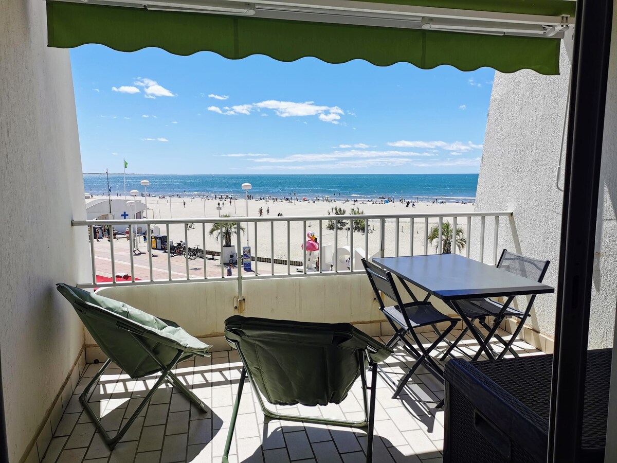 A fully equipped P2 apartment on the ground floor and on the front line facing the sea in Grau-Du-Roi! The apartment has an area of 46 m2 and has a private terrace of 20 m2. This rental has been newly furnished! You can enjoy a 160 x 200 bed and a very comfortable sofa bed. A private parking space will also be at your disposal. This apartment is 300 meters from the Grau Du Roi market and shopping malls.