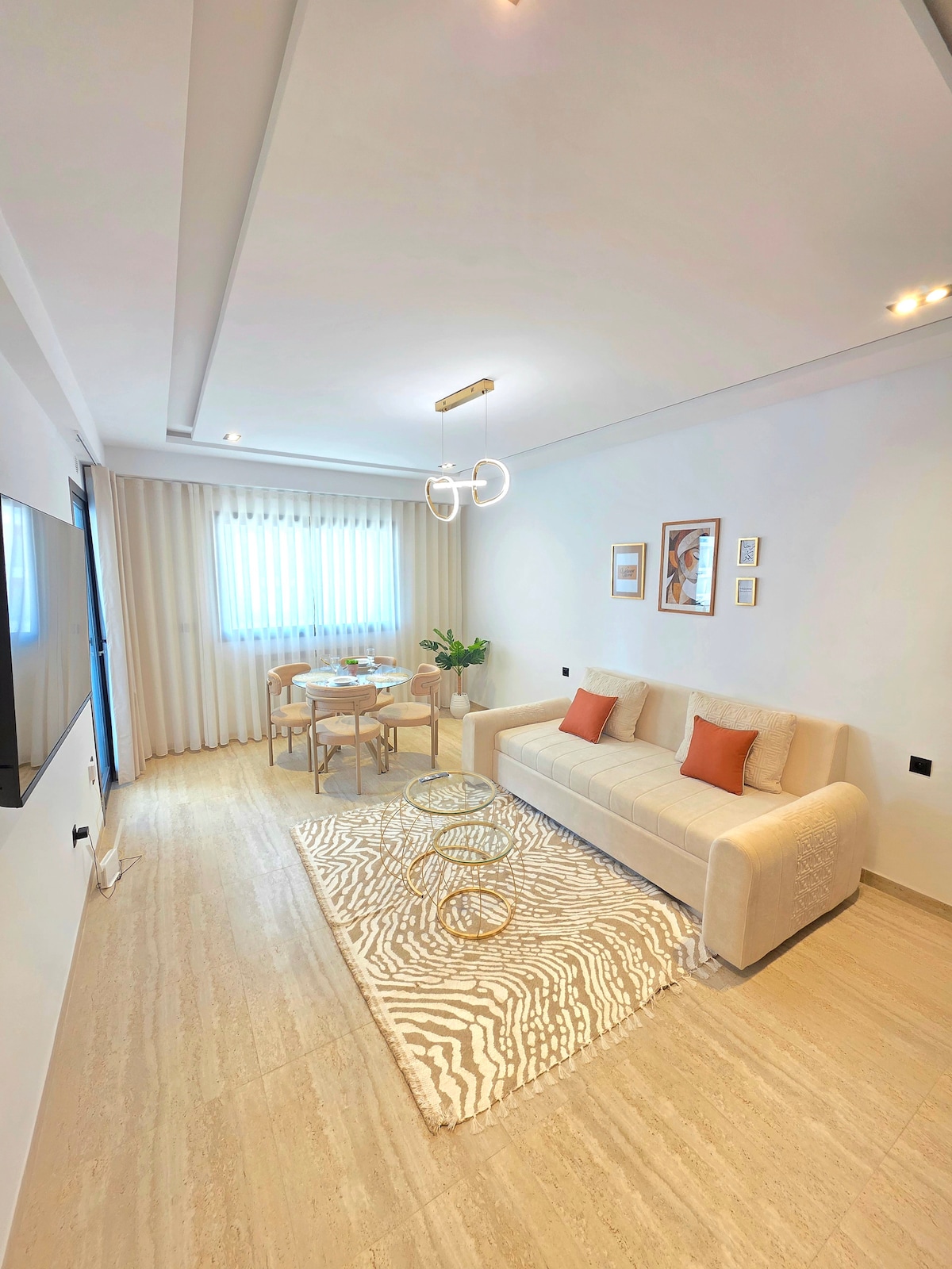A cozy haven in Tunis Escape to our peaceful apartment, conveniently located in a quiet neighborhood. Enjoy quick access to Tunis's key attractions (airport, tourist area, Carrefour, restaurant, shops, downtown). This modern space includes a bright living room, a balcony with unobstructed views, a bedroom with a dressing area, and a fully equipped kitchen. Relax in the jacuzzi in the bathroom, enjoy the pool or work in the coworking space. 24/7 security guaranteed.