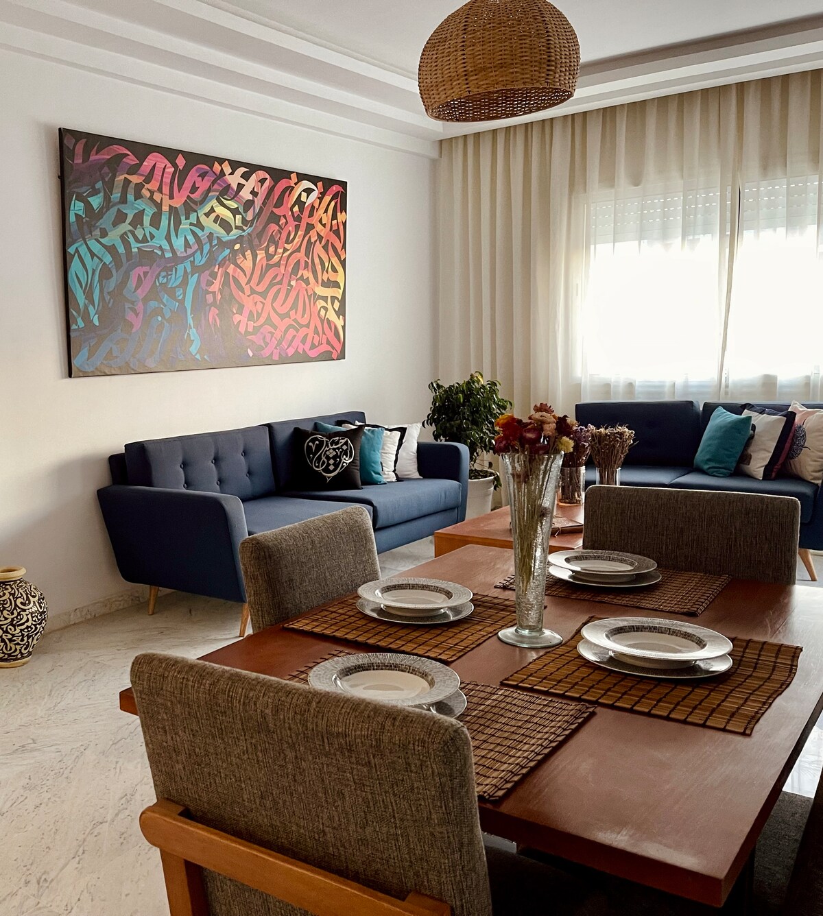 Bienvenue dans notre hébergement "ethnic chic", où tradition et modernité se rencontrent. À 10 minutes de la plage et près du Carrefour, du Tunisia Mall et du quartier d’affaires Lac 2, vous êtes à 5 minutes de Sidi Bou Said, Carthage et La Marsa, et à 10 minutes de l'aéroport. Profitez de notre hôtel 5 étoiles avec matelas ultra-confortables, Netflix gratuit, machine Nespresso avec capsules offertes, et une terrasse pour le petit déjeuner. Vivez une expérience unique ethnic chic !