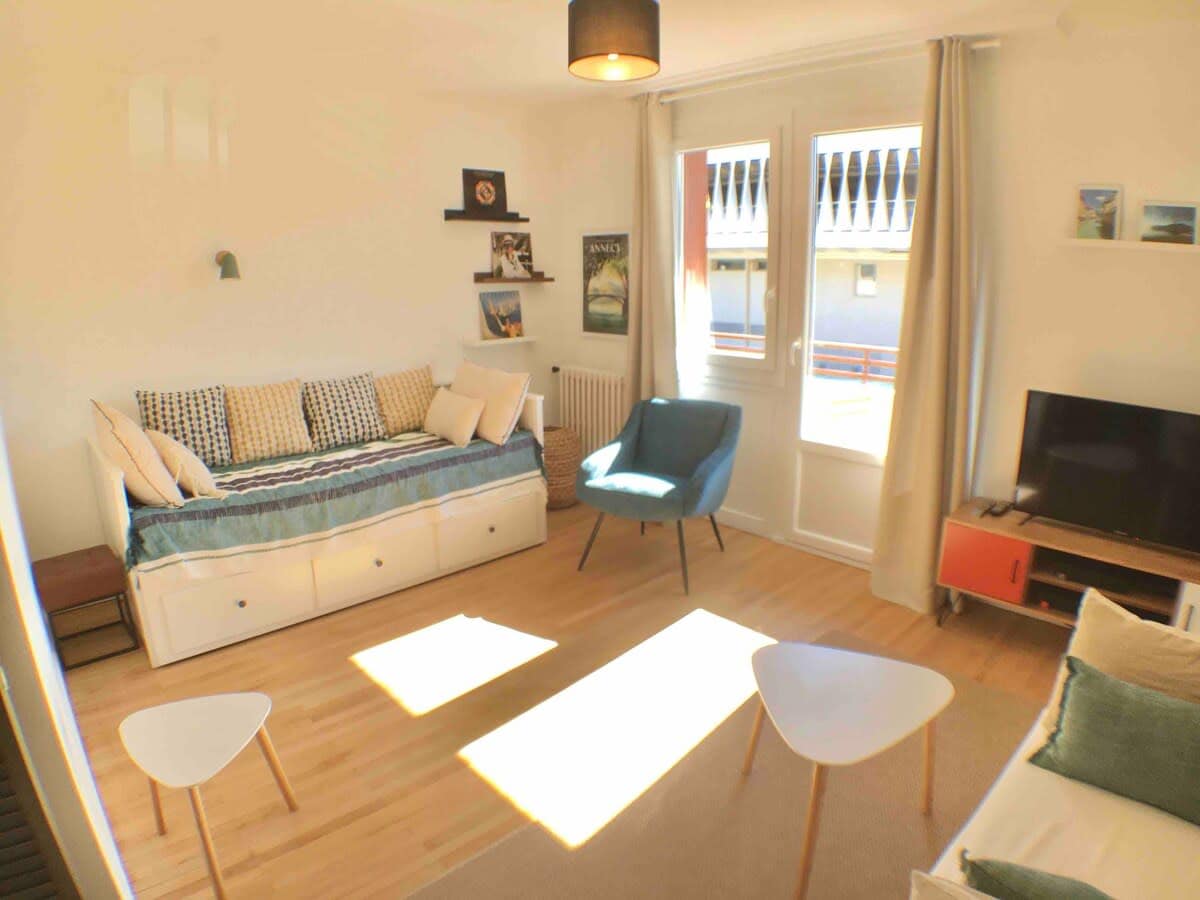 Large bright studio, quiet, just renovated, the Evasion offers a peaceful setting with natural and contemporary decoration creating a warm atmosphere. Ideally located 150 m from the lake, in a secure residence with elevator, on the 3rd floor, large balcony terrace, private underground parking and bicycles ( mountain bikes ) available. At the end of the street are all shops! The historic center is ten minutes walk, the lake 3 minutes. Sleeps 2 people