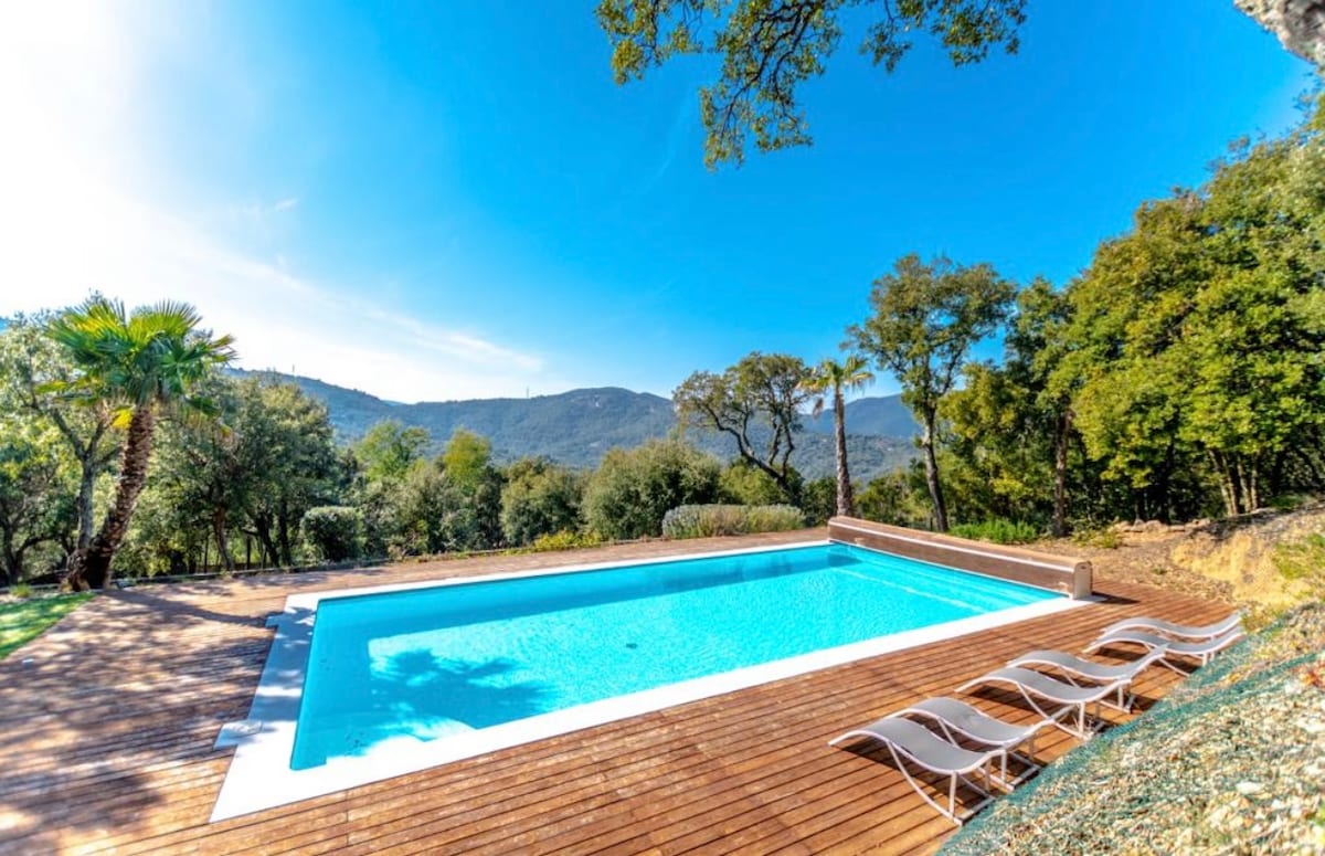 A beautiful, completely new provencal farmhouse, at the exit of the charming village of Le Plan de la Tour. 4 bedrooms, 3 bathrooms, 1 large living room with living room, dining room, open kitchen overlooks an outdoor patio with majestic views of the Plain of Maures hills. Private swimming pool, pétanque court, all in a small quiet area, 15 minutes from the beaches and 10 minutes from Sainte-Maxime or Grimaud. Family vacation, beautiful hikes, enjoy!