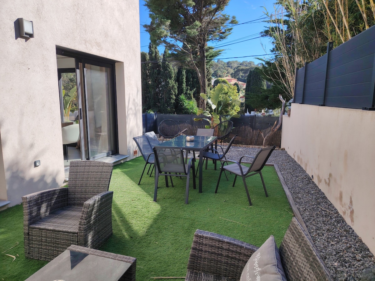 Bright and spacious apartment of 90m² on the 1st floor of a family house, with open sea view and private southern terrace. Located in a quiet environment, just 2.4 km from the beaches and in the immediate vicinity of the trails, it is ideal for savoring a breakfast in the sun or an outdoor evening. Completely independent entrance, secure private parking and full reversible air conditioning for optimal comfort.