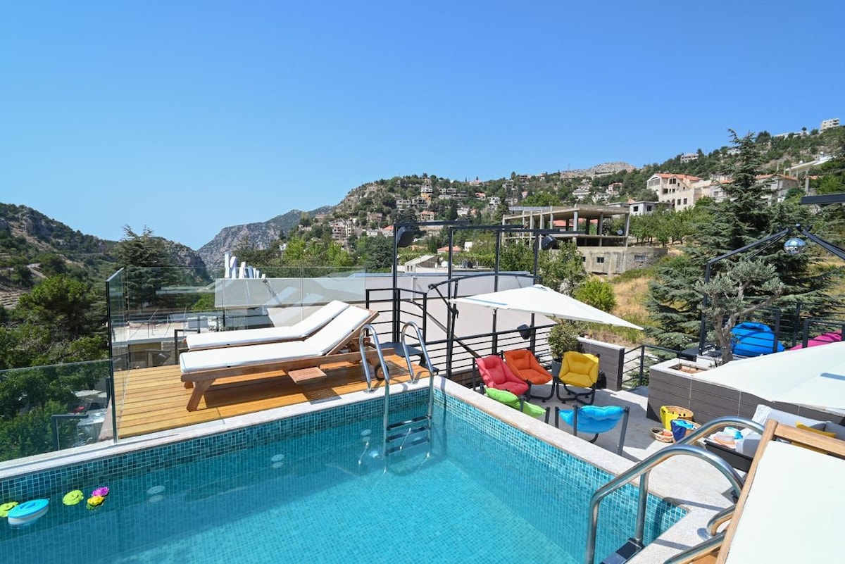 This special house has always been my dad's dream; a place where memories are made. Surrounded by nature, it is the perfect spot to relax and unwind. Whether you are planning a morning event or seeking a peaceful getaway, our spacious property can comfortably host up to 100 guests. Located just 45 minutes away from Beirut, you can enjoy the fresh air, lush greenery, and the soothing sounds of nature.