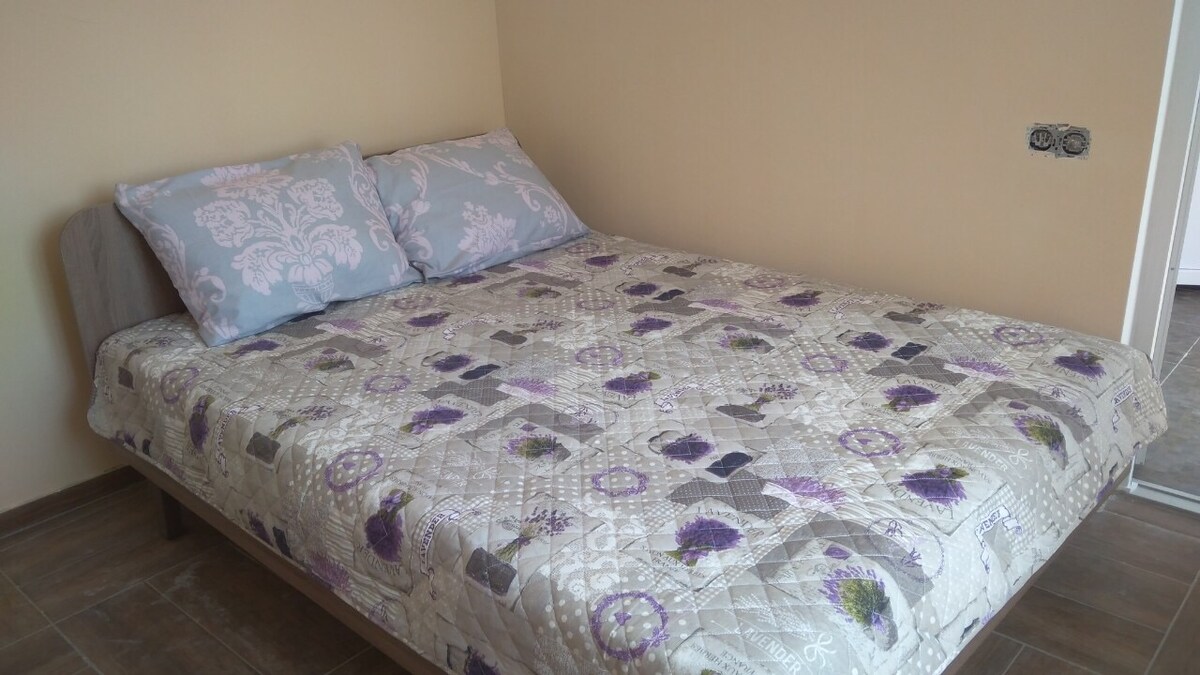 Peaceful accommodation for families in resort Sergeevka, on the shore of the Black sea and Shabolai estuary. The apartment is located in the center of the residential area, there is a small park with the playground, market, pharmacy, pump room, car park, gym nearby. The number of beds is up to 4. The apartment is fully equipped with furniture and appliances, there is an air conditioner, TV, refrigerator, electric stove, electric kettle, microwave, WIFI, hairdryer. Cold and hot water around the clock.