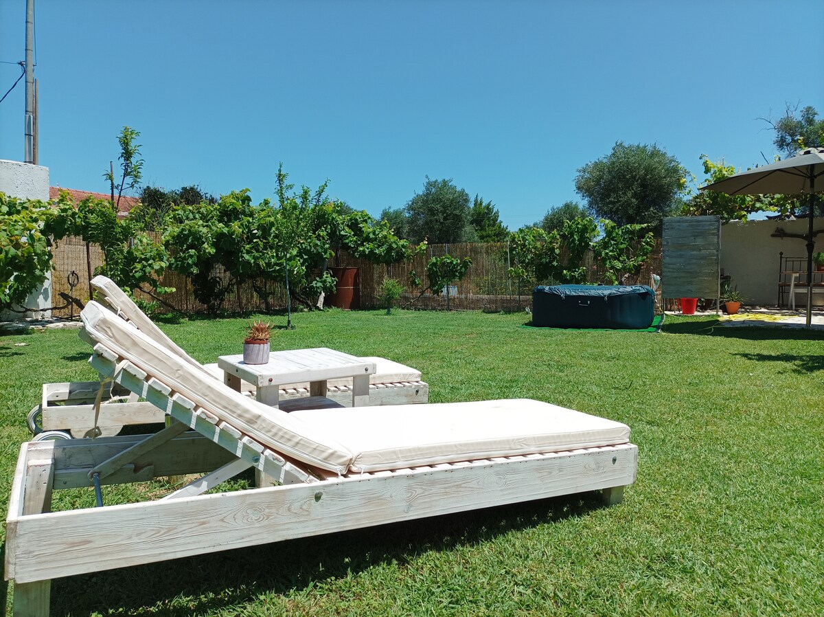 "Pretty house next to the beach" is a unique house with a large garden, just a 2 minute walk from the private beach of Agios Nikolaos! The main feature of the house is that it is located in nature, next to green trees, away from noise and crowds! It also has bbq, wifi, sunbeds on the beach, private parking but the main thing is the absolute peace and privacy offered by the house and the beach!