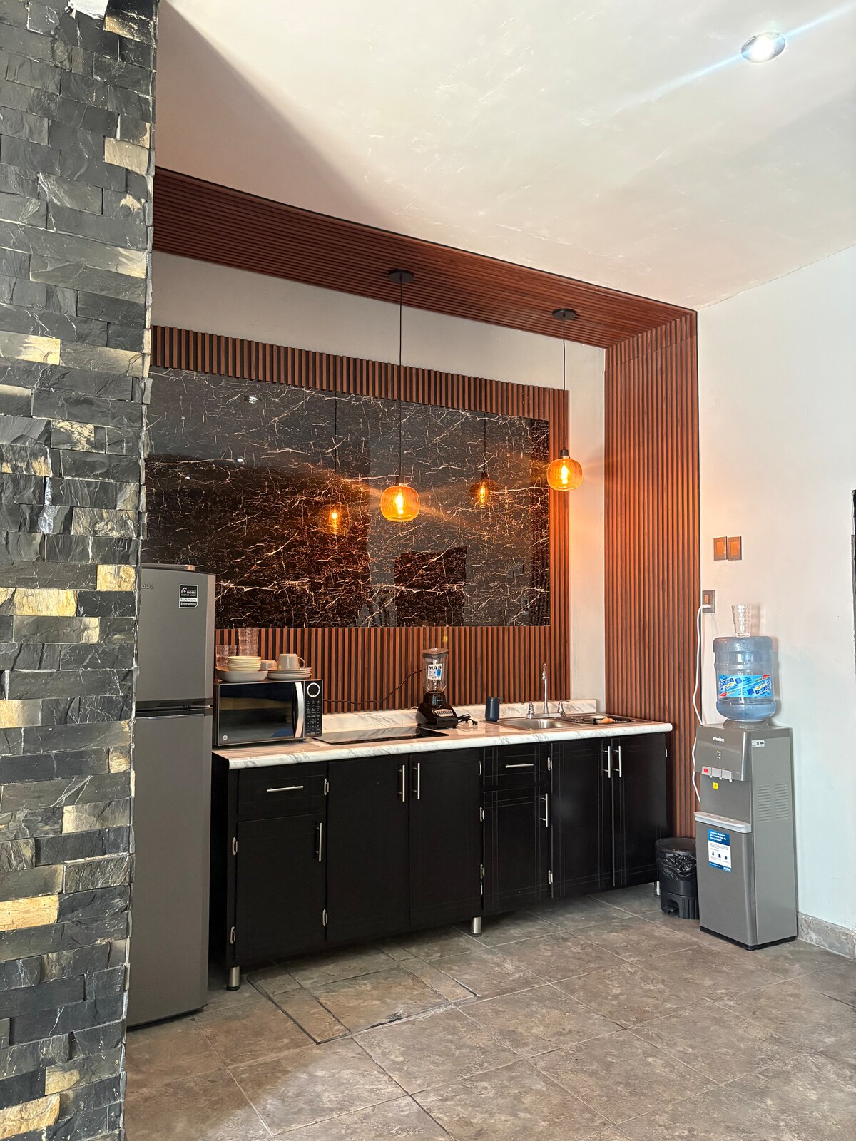 It is a rustic style, very cozy, I consider it "my little piece of heaven here on earth" You can rent a room or two. They have a bathroom for the 2 rooms, the house has a dining room, living room with TV, kitchen, patio with breakfast bar, garden area to rest or have a drink. The beds are double, you have towels and personal cleaning items, and a coffee maker in the room. It's a very Mexican style, I think you'll like it!! You have a hot water shower!