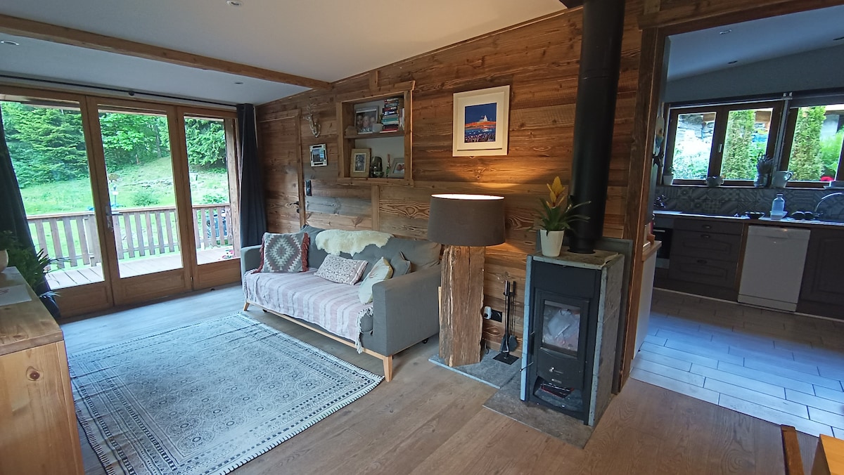 Little private chalet in the 5* Les Granges d’en Haut complex (free spa access). Incredible views of Mont Blanc from the open plan living room with balcony. Ten minute walk to ski lifts and restaurants in Les Houches. Fully equipped kitchen with top of the line appliances. Projector for movie nights. It's a little bit of luxury in the heart of the mountains, with adventures right on your doorstep in all directions. Note, the spa is closed from November 1st until December 13th.
