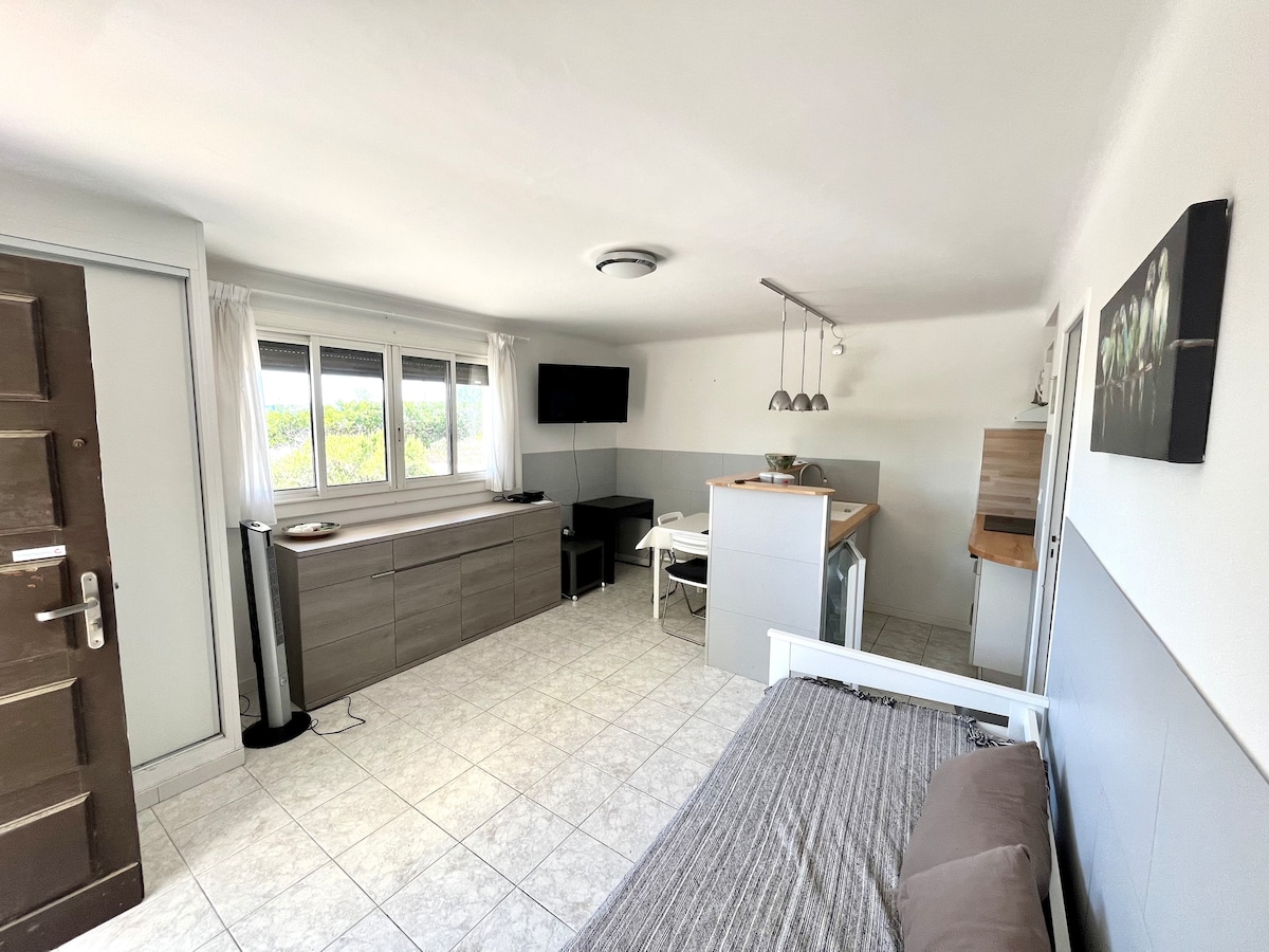 Refurbished 25 m2 studio with garden, within a fenced villa, the studio is independent. Private fenced garden for relaxing in the sun. Free street parking is available in front of the house. Quiet residential area 5 min drive to the large sandy beach of Les Lecques. Very close to the village of St. Cyr, shops and restaurants (5 min walk), and vineyards. Kitchen equipped with dishwasher, oven and stove...