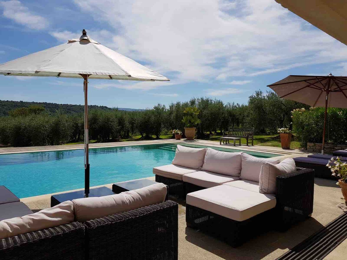 This stone house (300m2), built in a U-shape around the swimming pool, offers numerous relaxation areas, and has a lovely landscaped garden. The interior design is contemporary and bright. There are 3 bedrooms and 2 bathrooms for your comfort. There is outdoor dining and seating area on the cover terrace next to the swimming pool. Service includes swimming pool and garden maintenance, weekly cleaning and change of bed sheets and towels.