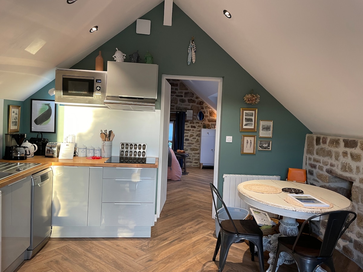 Kick back and relax by the sea in this calm, stylish space. This small farmhouse is comfortable, equipped and cozy. Linens included. The room is on a large bright mezzanine. You will have a terrace and a private garden. The GR 34 is a 20-minute walk along country roads. Beaches are minutes away by car or bike as well as amenities. Halfway to Lorient, Concarneau, Pont-Aven, you will have plenty of time to visit southern Brittany.