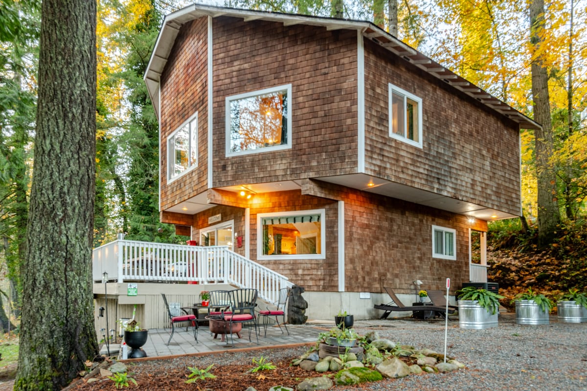 Kick back & relax to the sounds of the river, in this serene, stylish space, only 28 miles from PDX. Take in the beauty of the river & fresh air on the deck, hike, or walk across the street for wine tasting. Stay in & relax by your bonfire or head out for a night in town. Bring your friends, your family, and Fido too. Enjoy the upstairs game room/bar area, with a bar, air hockey, video games and more! Rest, relax rejuvenate, you deserve it! Add us to your wishlist now, so you can find us later!