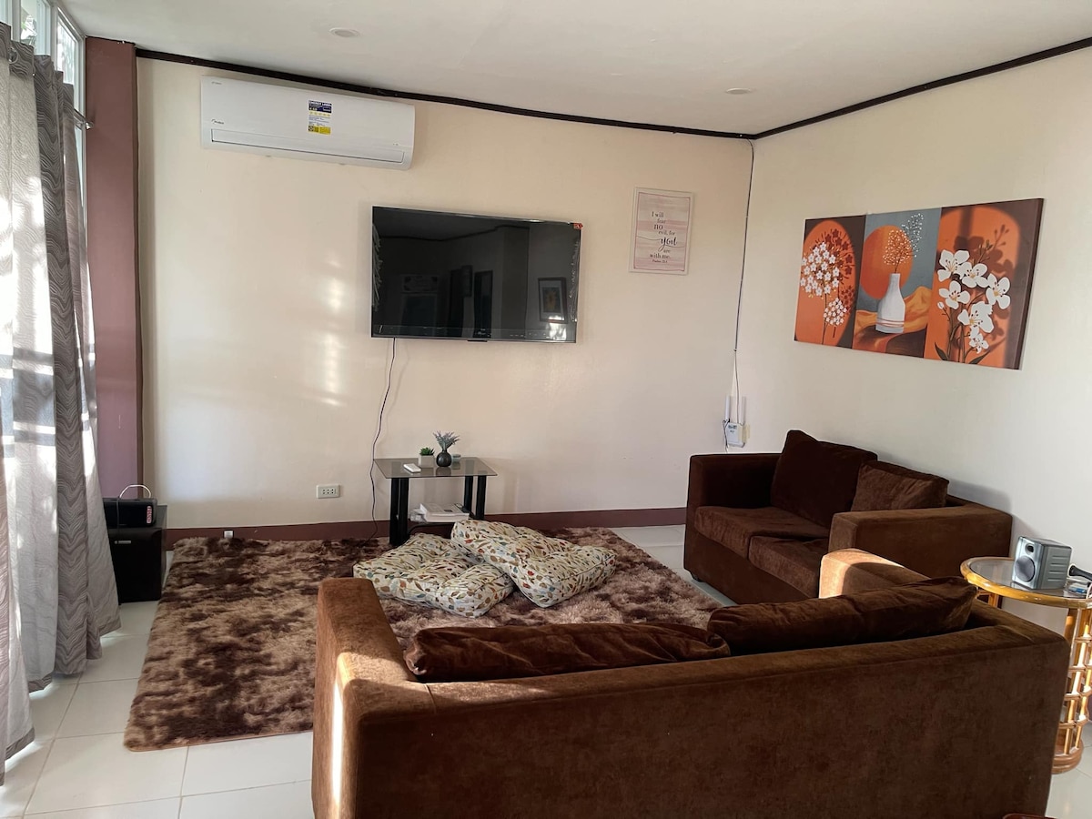 Your stylish home away from home — comfortable, convenient, and thoughtfully designed! ✈️ 5-min drive to the airport 🛍️ 10-min walk to a mall, fast food spots & cozy cafés 🏡 Warm, modern design with wood accents, stylish lighting & an open layout 🛏️ A cozy spacious bedroom for a restful stay - Sleeps 7 guests — perfect for families, friends, or work trips 🛋️ Inviting living area for relaxing or entertaining 🛜 Internet Provider Converge: Speed usually ranges from 50-150 mbps