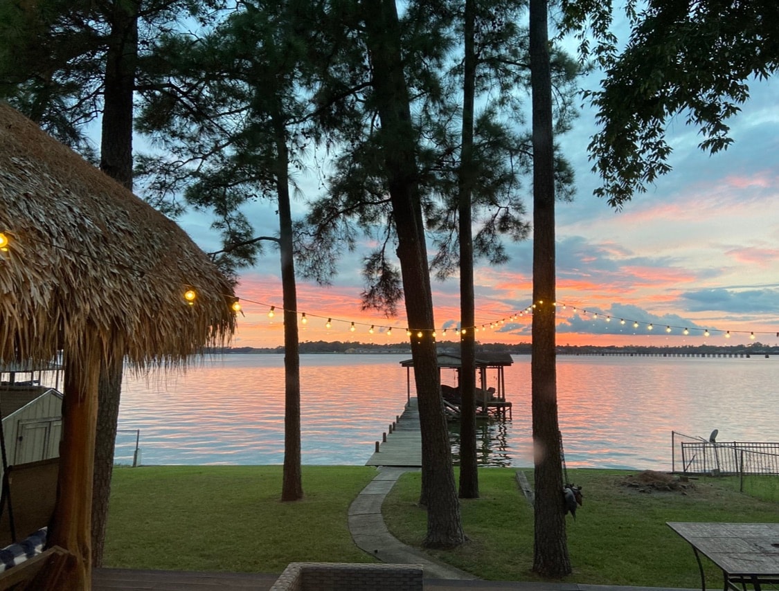 Experience the tranquil beauty of a lakeshore when you stay in this cozy vacation rental. Featuring a stunning rustic and chic interior. This tiny cabin is a must stay. Spend time fishing from the private floating dock, watching wildlife or gathering outside at the firepit with your loved ones. Full RV hook-up. Enjoy a fun filled day at one of the 3 area pools, splash pad with your kids, playground, mini golf or riverfront beach. The white sand beach on the Trinity River is only 5 minutes away.