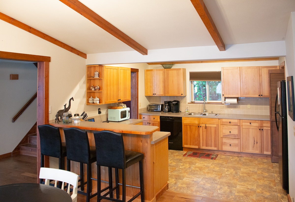 Bright and airy home in the woods surrounded by established gardens and wildlife, close to several walking and hiking trails right out the front door, 1 mile from town, 10 miles from downtown Coeur d Alene which offers shopping, eating & beautiful Coeur d Alene Lake. Stocked with coffee & tea to enjoy while you sit on the porch, a kitchen fully equipped to prepare meals or head outside to grill! Custom walk-in shower with views of a neighboring meadow with shampoo, conditioner & soap provided!