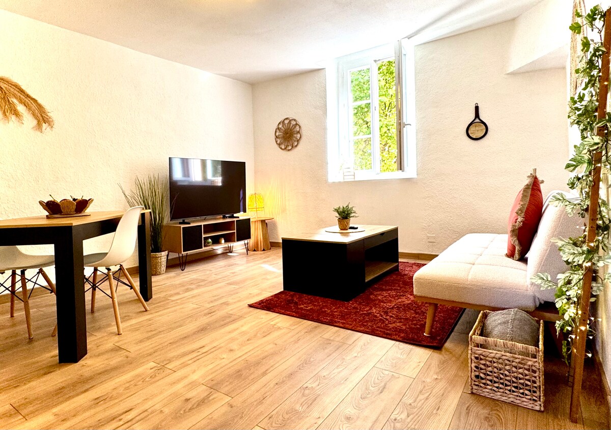 🎭 Theater 200m away 🚂 Train station 980 m away 24/7 self 🗝️ check-in 🌸 Air conditioning / Wi-Fi / Netflix Charming 2 rooms on the garden level, not overlooked, in a nice, QUIET and sunny street in the HEART OF ORANGE. The exposed stones and the pretty Roman vault preserve all the authenticity and charm of this 19th century property and will seduce you. Plenty of street parking + minute stop in front to unload, huge FREE Sully parking 300m away. Housekeeping provided (but tidying up is required)
