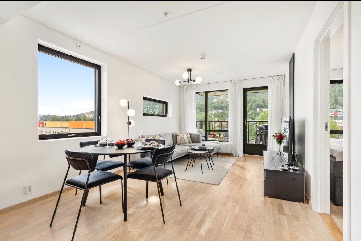 Fresh and spacious two- bedroom apartment with a central location in Drammen. Free street parking and walking distance to train, bus, field and city. 30 min by train to Oslo! Sleeps five, office space, dining table, TV w/Apple TV, shower and washing machine. Apartment: living room(sofa bed), bedroom(double bed+single bed), bathroom, hallway and laundry room. The apartment is part of a semi-detached house and is located in a quiet neighborhood with great views. Equipped with all you need, kitchenware and bed linen/towels for 5 people.