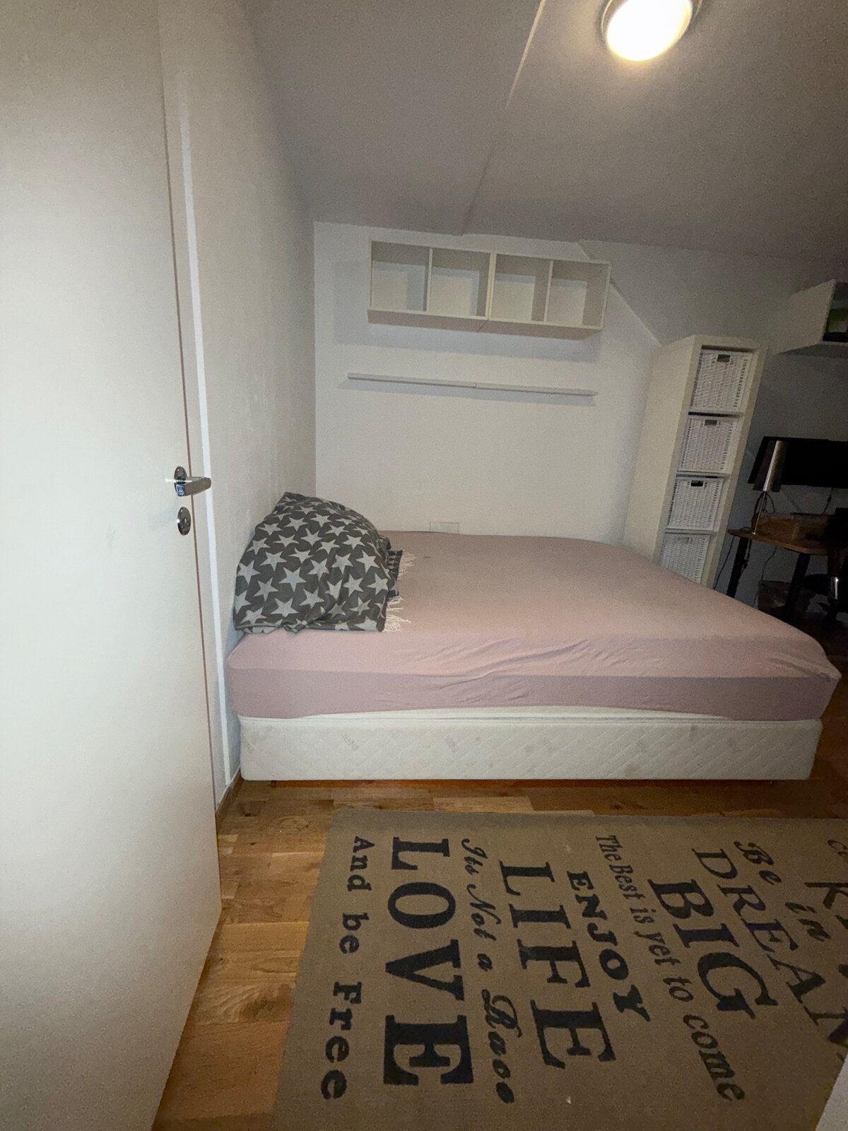 Bright and spacious apartment, 2 min to bus stop, 5 min by bus to the city center. Bedroom with a double bed, a sofa bed in the living room that sleeps 2. Fully furnished kitchen. Private patio. Pets allowed by agreement. Good hiking opportunities in both summer and winter are nearby.