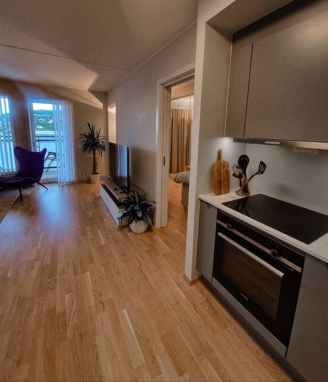 A new apartment from 2022. Bedroom with double bed, spacious living room and fully equipped kitchen. Bathroom with washing machine. Children's room has bunk beds. Private veranda. Good opportunities with public transport down to Lillestrøm and Oslo. Marikollen offers alpine and cross country. Garage space include.