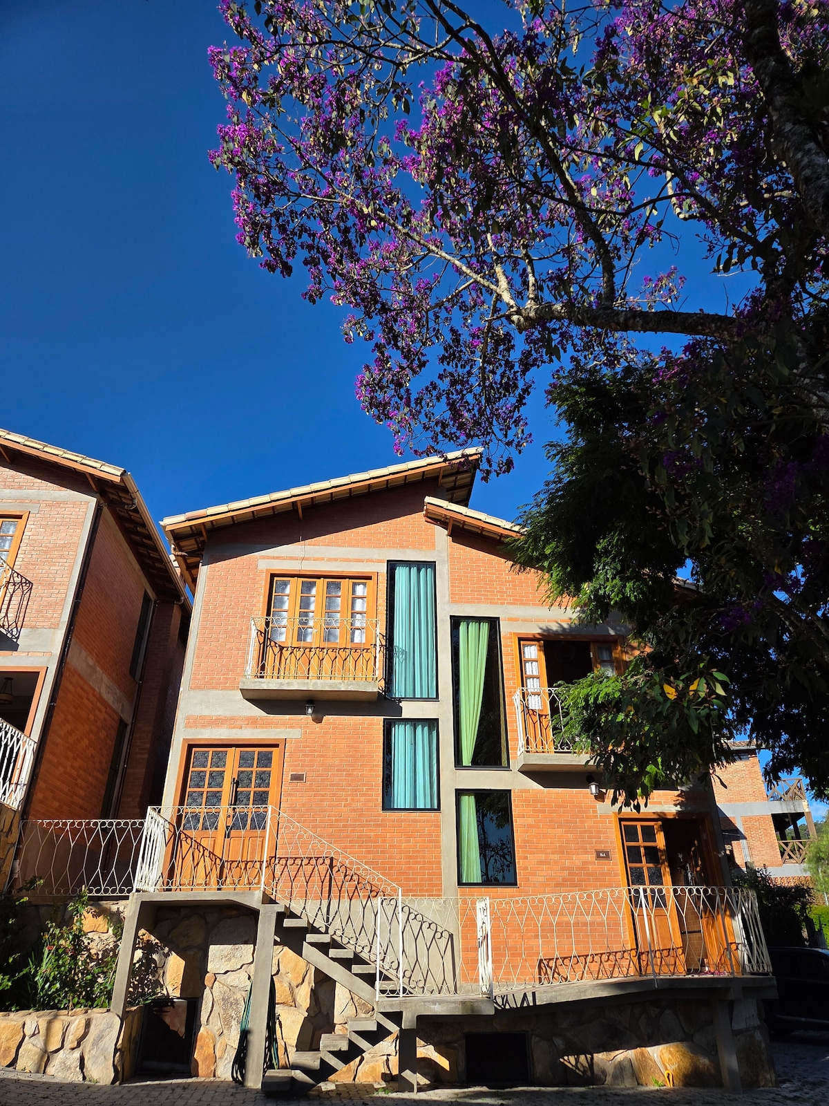 Our chalet in Ibitipoca is very cozy and comfortable, has 2 bedrooms with 6 beds, accommodates 8 people, has 2 bathrooms, 2 balconies, a dining room, a living room, a games room, a kitchen with a wood stove and barbecue, and a deck with a wonderful view of the sunset! It also has a very good fireplace to warm up from the cold! It is located in the arraial, on a plot of 1,000 square meters, and has a beautiful garden in the front, with several native trees and a variety of flowers, where there is a very nice shower!