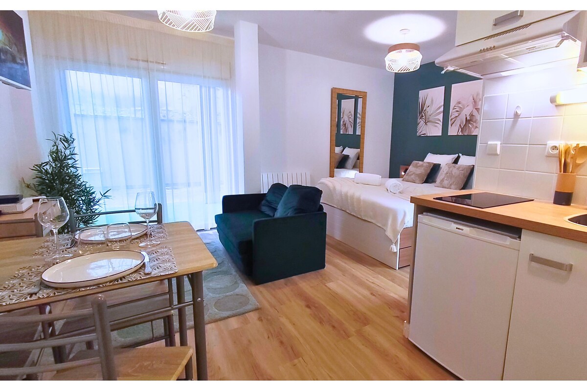 Kick back and relax in this renovated space with natural and stylish decor. A stone's throw from the BEAUBLANC stadium, 8 minutes by car from the ZENITH and the PARC DES EXPOSITIONS in Limoges and close to the highway accesses, the MONET will seduce you thanks to its many amenities that will bring you all the comforts you need for your stay. Located in the small building on a quiet street, you have a private parking space in the outdoor parking lot of the residence.