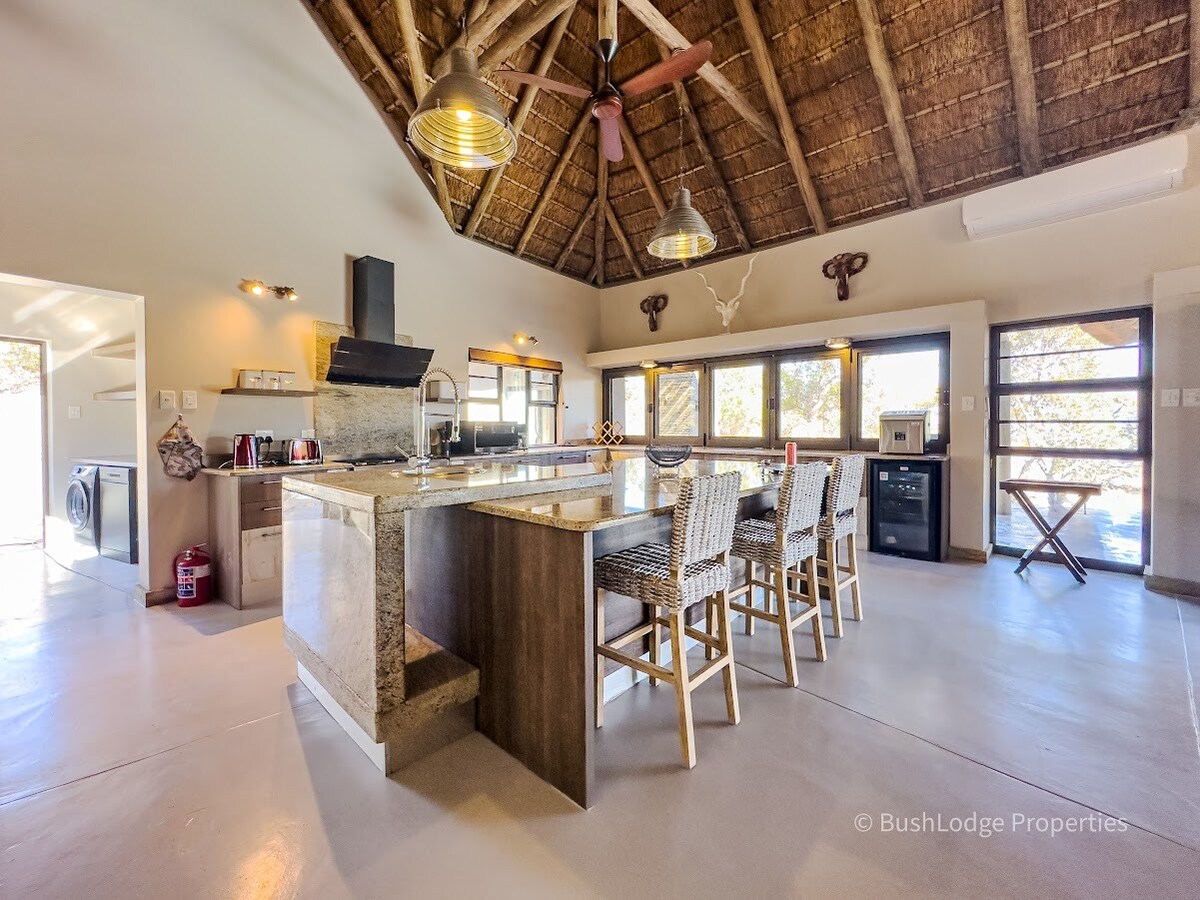 Within Mabalingwe Big-5 Nature Reserve, discover the perfect luxurious lodge in the heart of Mabalingwe Nature Reserve. This exquisite blend of comfort and nature lets you enjoy wildlife roaming around, creating an unforgettable experience. Featuring three spacious ensuite bedrooms with outdoor showers. Perfect for family or friend gatherings, with a private cottage and an ensuite bathroom is also available. Relax by the outdoor boma or the refreshing pool. Your ideal escape awaits you.