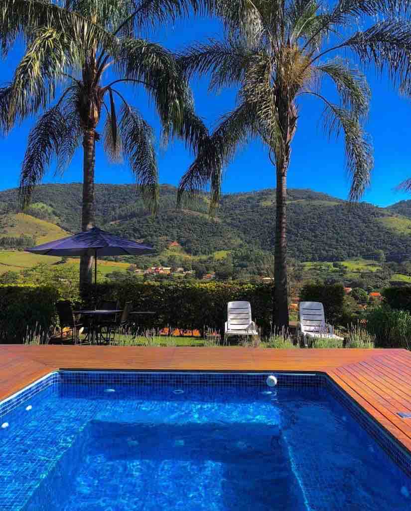 Exclusive house with incredible views, barbecue, 3 suites all with balcony facing the pool, the main one with bathtub, queen bed and air conditioning. The house has Wi-Fi, self check-in, speakers, a living room with a fireplace and a smart TV. Located on top of the mountain with a heavenly view. A safe place, all surrounded by a screen, sustainable, 100% of the electricity produced here and an automatic gate. Your pet can walk around the entire property (2000 m2).