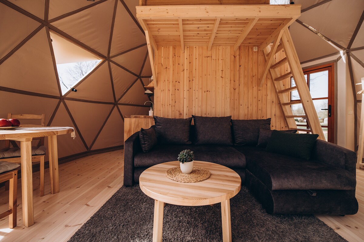 Tai modernus pabėgimas iš miesto. Patogumas, stilius ir laukinė gamta viename. Kupolas sukurtas tiems, kurie myli gamtą, tačiau nori ja džiaugtis patogiai ir stilingai. Jums čia patiks, jei vertinate kokybišką poilsį gamtoje. Kupolas nuomojamas dviem asmenims, pašalinių asmenų toje pačioje teritorijoje nebūna. Tad būsite tik Jūs ir gamta. Čia galėsite mėgautis gražia ežero panorama, irstytis valtele. Vėsesniu oru čia galėsite įlysti į karštą kubilą ar mėgautis spragsinčia krosnele viduje.