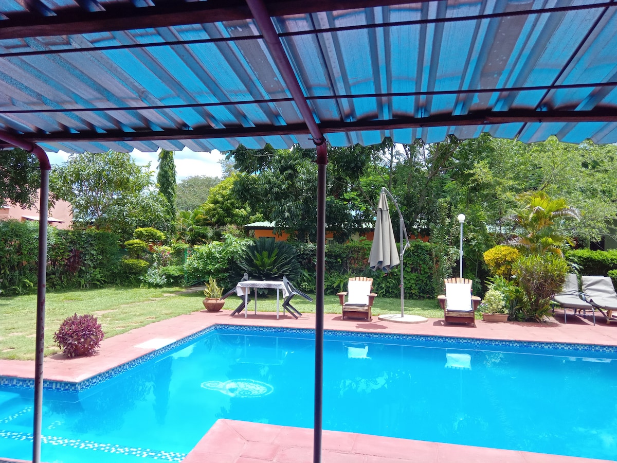 Comfortable fully furnished apartment for single travellers/couples, adventurers and small families in a highly sought after secured location in the heart of Livingstone - with beautiful gardens, outside bar and beautiful swimming pool.