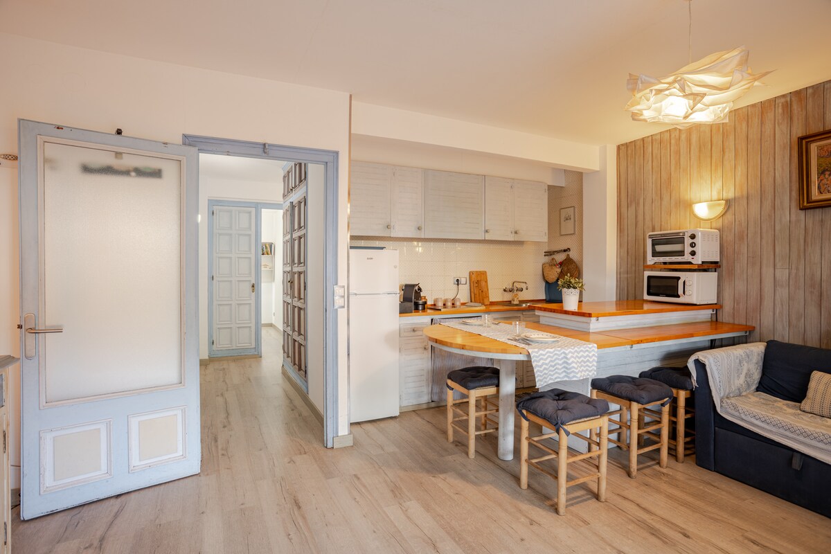 Front-row apartment. Have breakfast, lunch, and dinner with ocean views in a fully-equipped apartment. Relax watching the moon or a starry night, sleep and rest to the sound of the waves, wake up to a sunrise on the horizon. Located in a quiet area, a 10-minute walk from downtown Platja d'Aro, where you will find all kinds of restaurants, shops, and leisure. A few km from Palamós, Girona, Calella, Tossa de Mar, Sant Feliu, S'Agaró, Begur...