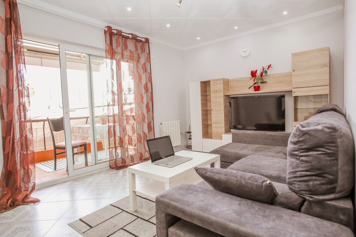 Small 20 sqm apartment with transoms on the 1st floor. City center. The beach and station are 5-7 minutes walk. 1 hour 20 minutes drive to Barcelona. Street parking is 200 meters away for 6 euros per day. Free parking on the opposite side of the highway is a 7-10 minute walk. There are plenty of cafes, restaurants and shops nearby. Safe neighborhood. Air conditioner, washing machine. A fully equipped kitchen. TV. Wi-Fi. HUTB-015461. My place is good for couples, solo travelers, and business travelers.