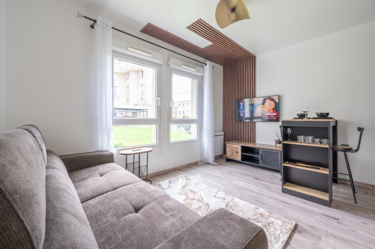 This stylish and fully equipped apartment is ideal for 4 people. The accommodation consists of a large living room, kitchen, bedroom and bathroom. Located in downtown Torcy, you can enjoy all the amenities. The bus stop located at the foot of the accommodation will allow you to get to Torcy train station in 5 minutes, then to Disney in 15 minutes and Paris in 25 minutes via the RER A. The Vaires-Torcy nautical base is the site of the canoeing-kayaking and rowing events for the Paris 2024 Olympics.