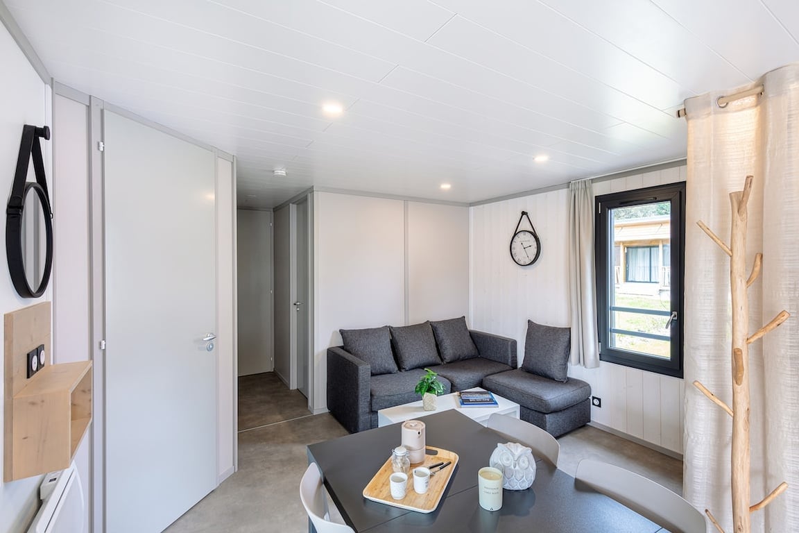 The Ninon cabin is a wooden house of 35 m2 , sleeping 3 people (1 room with bed 160x200cm plus a click in the living room , 5 min drive from the beaches(5km)and the city center (5km)of Pornic. Between sea and countryside in a lush garden, private enclosed parking.. for a quiet week of vacation, on the Jade coast..