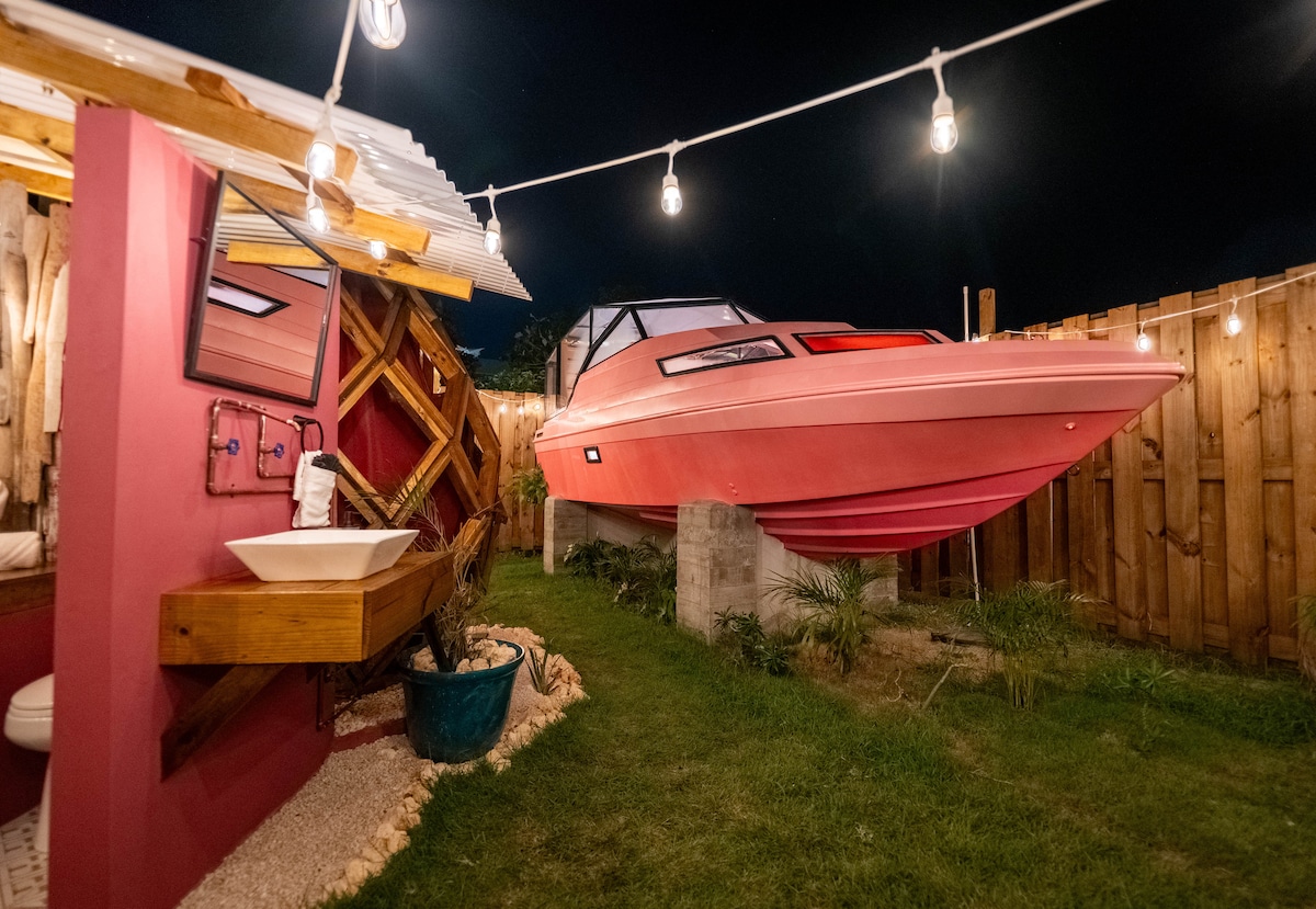 Welcome to CRASH BOAT – An Exotic Pink Micro Boat Home! Designed for those who love adventure and unique stays. 2min WALK to the Beach 35min - SJU Airpot 25min - El Yunque 25min - Piñones 20min - Los Kiosks de Luquillo Inside, you’ll find a queen sized bed, a kitchenette, a powerful ac, full-cover curtains, and a functional design. Enjoy the outdoor shower and a private bathroom. Whether you’re here to relax, explore, or soak in the island vibes, Crash Boat offers an unforgettable stay