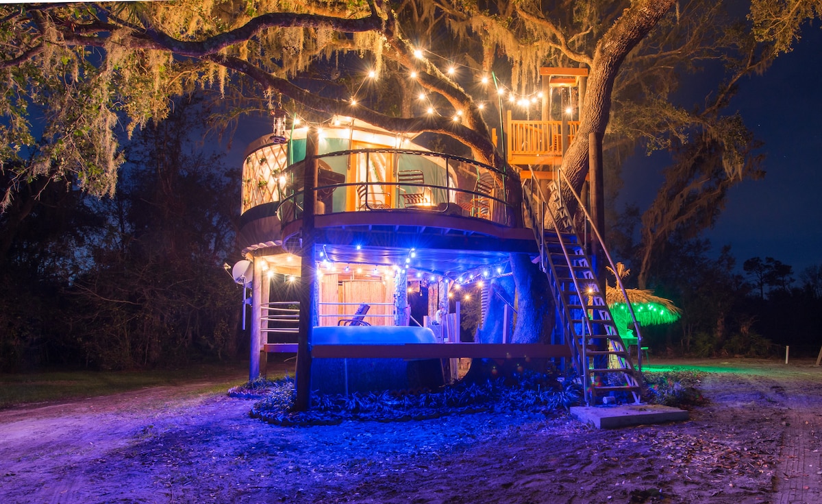 Private Getaway seen on Netflix' Most Amazing Vacation Rentals! Fulfill your dream of staying in a tree house! For safety reasons, this venue is for adults only. We do not allow children or pets. The Treehouse has a tree trunk elevator, private shower, air-conditioning, and real toilet inside so that you can bring your significant other(no compost toilet here). This 18 foot yurt has accent lighting to create the mood of living in the trees on a starry night. Danville is a glamping experience.