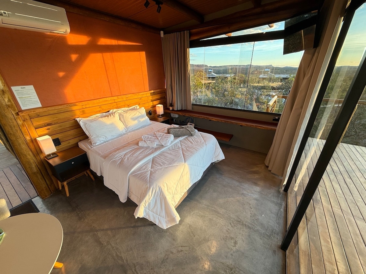 CASA VÊNUS High in the mountains of Chapada dos Veadeiros, where the cool breeze and starry sky awaken Alma. With a cozy suite, a full kitchen integrated into the living room and a private heated pool sculpted into the landscape, Casa Vênus offers a unique and unforgettable experience. Designed for those who wish to sleep under a starry sky and wake up with the surrounding Cerrado, this home offers comfort, sophistication and deep connection to the present time.
