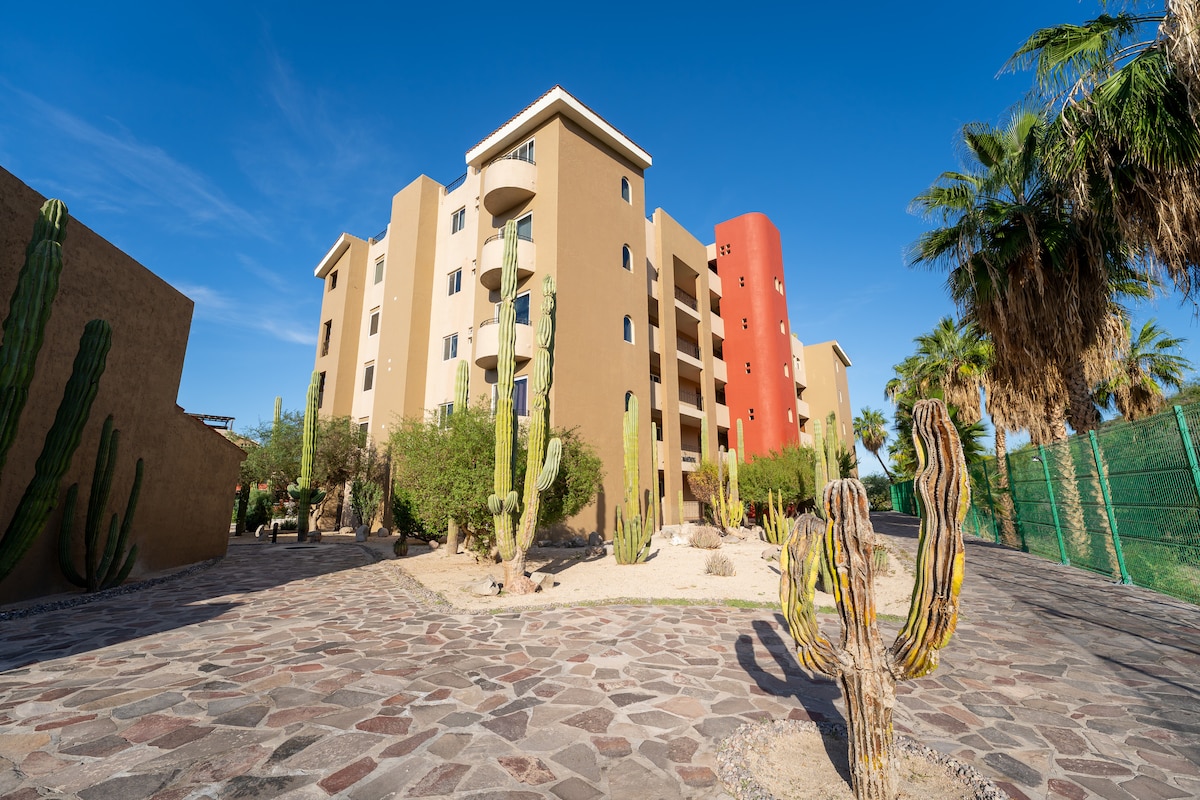 Our modern apt building has Hi-Speed WiFi and is just steps from beach along Sea of Cortez. This two-bedroom apt has a/c, ample living space, perfect for up to 6 people (with a sofa-bed in the living room). A quiet neighborhood of beautiful beach homes makes the walk along our beach safe and secure, just a short distance from palapas & the Marina. Ride bikes or walk along the beach to the Malecon, the Plaza & the Mission. Discover why Loreto is known as "Pueblo Magico" (a Magic Town)