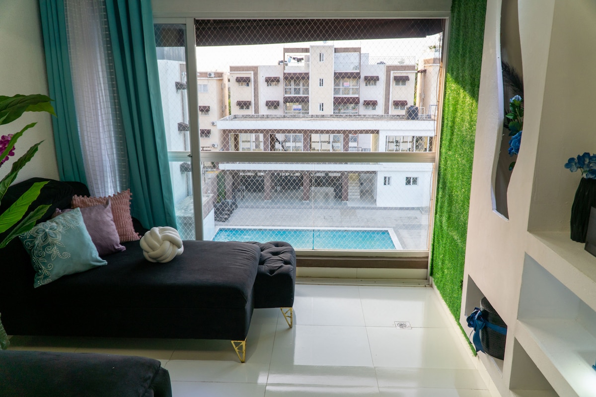 Cozy apartment, on the 3rd floor, inside you will find everything you need for a pleasant stay, equipped kitchen, laundry area, 2 bedrooms with double bed, master bedroom with air conditioning, second bedroom with fan, one bathroom. In nearby areas you will find supermarkets, shopping malls and a few minutes away the American Embassy and La Isabela Airport. Water is available and we have an internal water tank that supplies