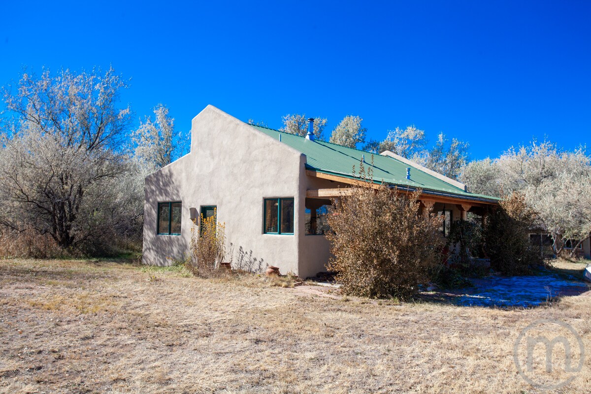 An architectural gem with private access to natural hot springs in the Rio Grande Gorge Park. A living and breathing piece of art on fifteen private acres nestled amongst junipers trees, pinon and sage brush, offering sweeping views of the surrounding valley. Sustainably built with cast earth walls, corrugated metal roof, radiant heat, and Japanese style mahogany wood work, plus all the amenities and comforts of a modern home. Miles of hikes into and above the Rio Grande River and Gorge.