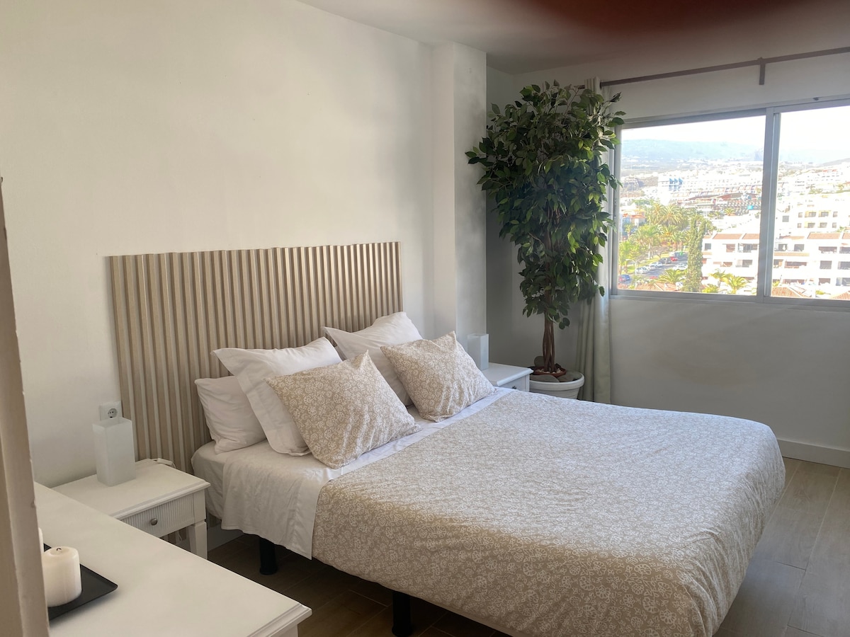 Beautifully refurbished 2-bedroom apartment located in the heart of Los Cristianos: 5 minute walk to the beach and in the center of all commercial activity Completely equipped for a great vacation: master bedroom with a double bed, second bedroom with two single beds, free Wi-Fi, Smart Samsung TV, Air Conditioner (both bedrooms and living room), safe deposit box, kitchen utilities. The bathroom is equipped with a washing machine, hair dryer, towels and mats. Fresh bed linens in the bedrooms.