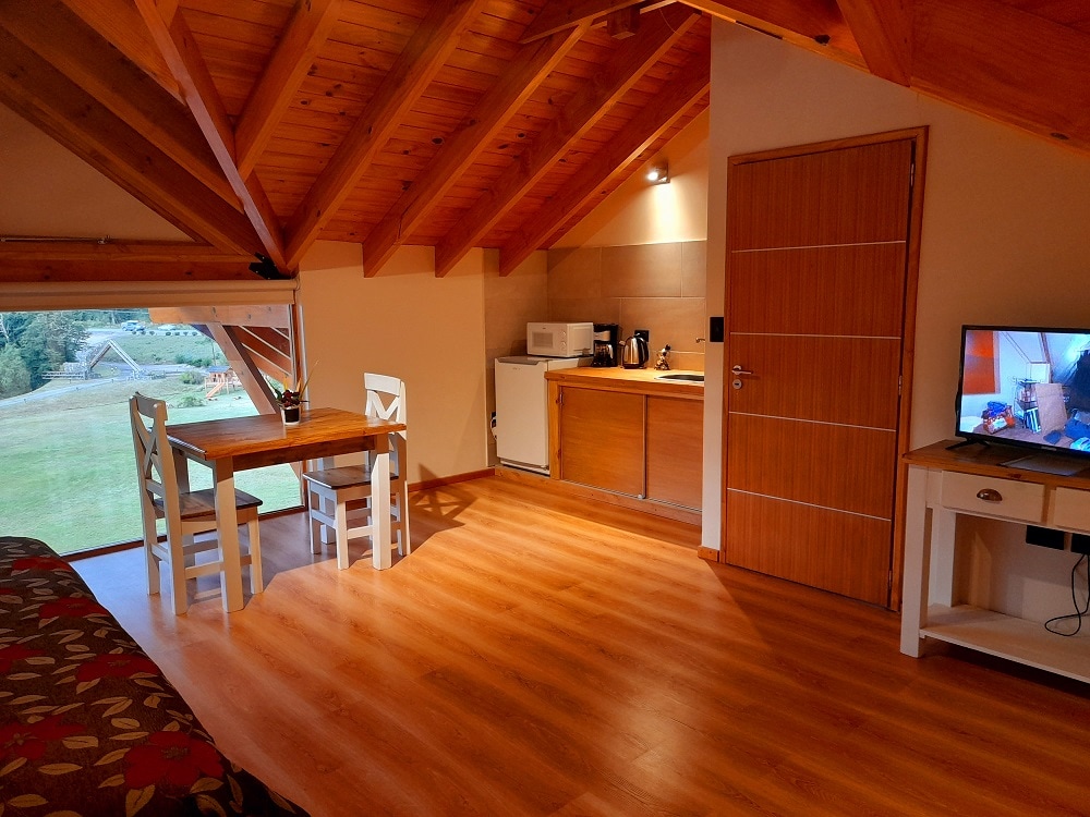 It's an exceptional studio apartment!! Although it is a single room, it is super bright and very spacious. It has large windows overlooking a private deck. It is very warm, fully equipped with a kitchen, dining room with a partial partial of the bedroom area. It has a king size sommier (it can be divided if necessary, being equipped with two sommiers of 1 and 1/2 square.) 50" LED Smart TV to enjoy after a day outdoors or on a rainy afternoon!