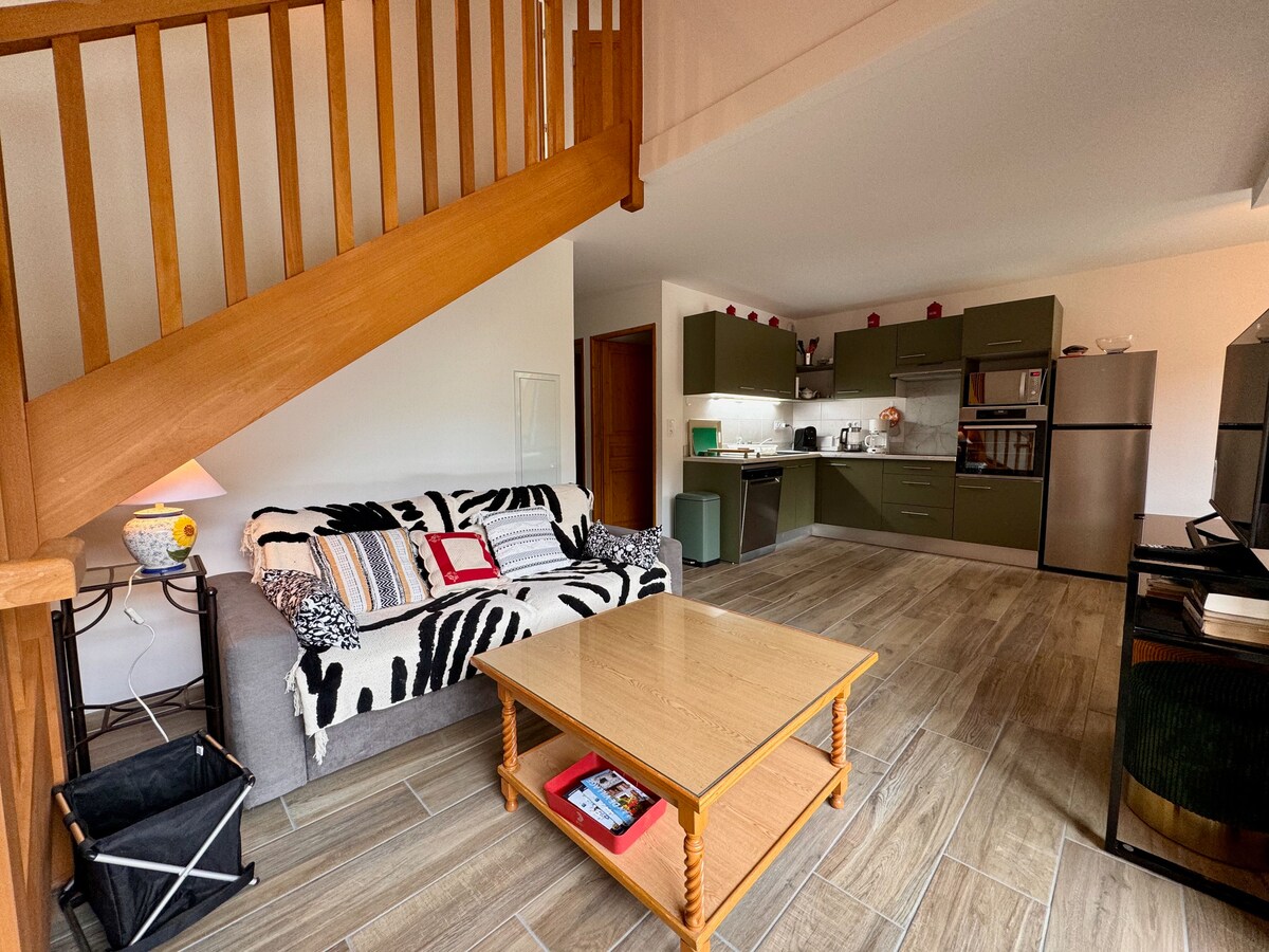 Bright duplex with lake view, located on the 1st floor of a quiet residence in Loudenvielle. 500 m from the Skyvall cable car, Balnéa thermal center, hikes and activities. In the immediate vicinity: • Balnéa, gym, pumptrack, paintball, cinema • Free paragliding / mountain biking / ski shuttle in front of the accommodation • Walking distance: lake, Balnéa, restaurants, shops Secure location for: • Bicycles • Skis (private cellar) Free parking on site, everything is within walking distance.