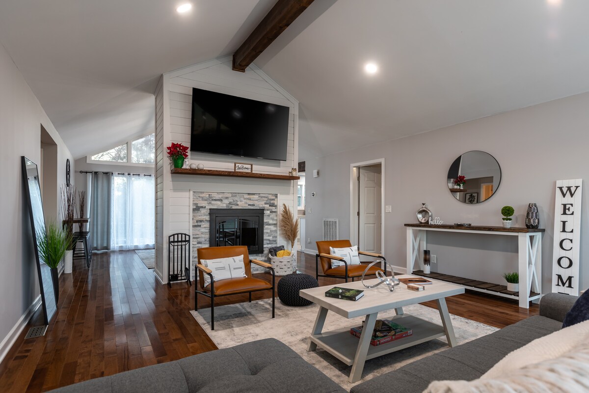 Stunning modern ranch style home in the heart of Lenoir City Tennessee. When you first step through the door you will see the beautiful vaulted ceilings, stone fireplace ,and open airy layout. The home is furnished with pillow topper memory foam mattresses, a living room you won't want to leave, and a newly renovated kitchen with beautiful countertops and new appliances. The home is on an acre of land located in a quiet neighborhood just minutes from I-75 and the Tellico Lake.