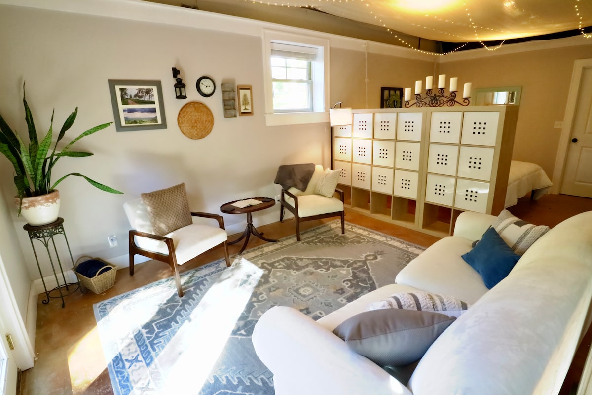 Surrounded by woods, this peaceful studio guesthouse provides a retreat-like setting close to our vibrant downtown. The private quarters feature granite countertops, fully-stocked kitchen, separate entrance, comfy bed, sun-filled rooms & a lovely, outdoor seating area to enjoy the quiet. *4 min to Kroger grocery & restaurants *6 min to Tennova North Hospital—perfect for travel nurses! *12 min to downtown *16 min to UT's Neyland Stadium & Thompson Boling Arena *1 hr to the Smoky Mountains